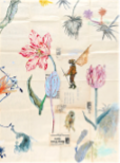 In other works, Palaska juxtaposes finely rendered floral motifs—reminiscent of botanical textbook illustrations—with isolated, military-like figures. While adopting the aesthetics of botanical illustration, she also exposes its ideological entanglements. During the era of European expansion, botany was far from a neutral science; it served to appropriate, classify, and control both nature and knowledge. Botanical drawings became instruments of imperial power, cataloguing foreign territories and their resources.