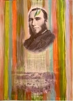 Elsewhere, she turns to historical photographs that document colonial power relations—images originally produced as evidence of imperial order and racial hierarchy. Palaska transforms these depictions through drawing, collage, overpainting, exaggeration, and color interventions, breaking open their visual logic. The images show people who represent colonial violence, but at the same time, in Palaska's depictions—with green faces, purple hands, and staring eyes—they become almost absurd figures. The colorful overpaintings act like masks, exposing the grotesque staging of power. The works in Say It Softly oscillate between sensual excess and critical unease, opening up a space where memory and imagination converge.