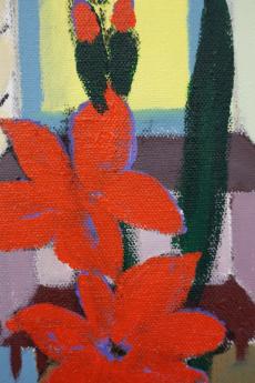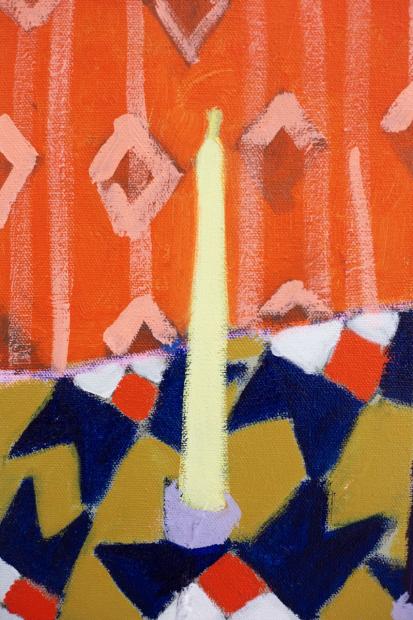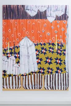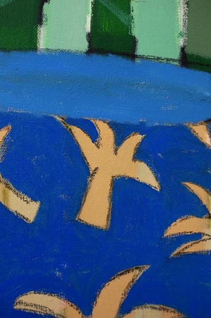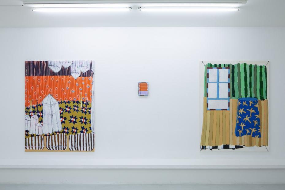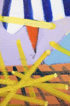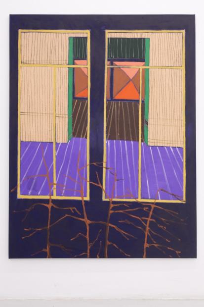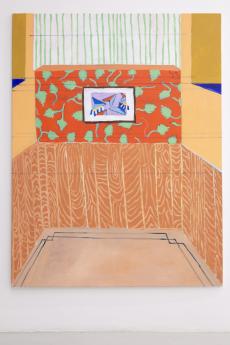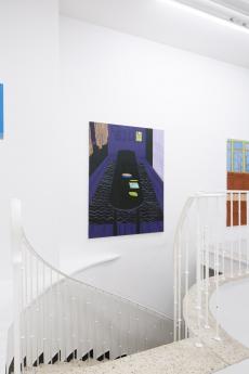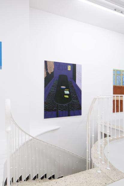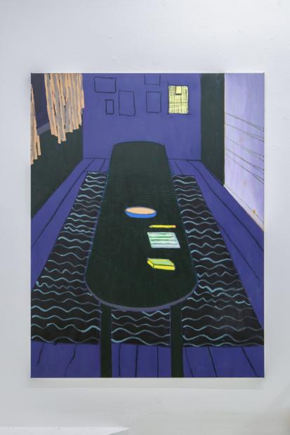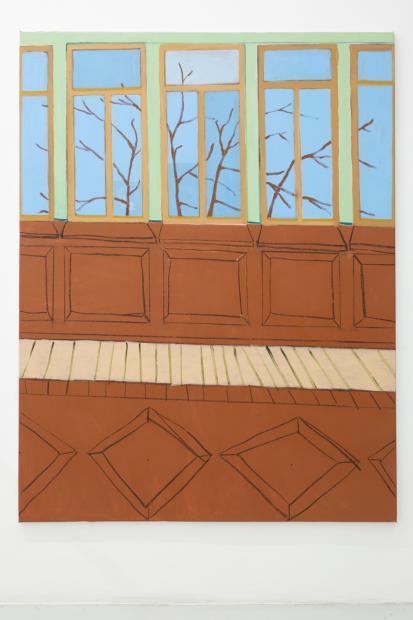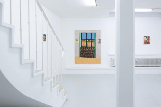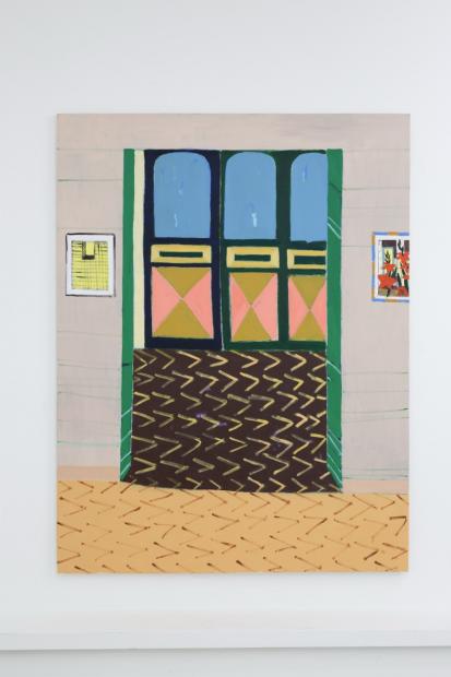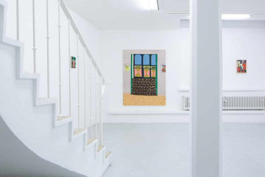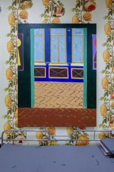 In her new, large-format canvas works, Antje Zeiher consistently focuses on the exploration of spaces. The compositions are clearly structured, precisely thought out, and executed in acrylic. Whereas in earlier works she played with perspectives, concentrated on details, and only hinted at the big picture, she now takes a clear position: the view into the room. Our gaze travels across the room to the window. The spaces we view with Zeiher are mostly empty; sometimes we see a table, sometimes a picture hangs on the wall, but nothing more. Patterns that evoke memories, colors that reflect emotions, surfaces and textures that tell stories. Motifs from small-format works reappear in the large formats and condense into a multi-layered structure. Her painting is as much a psychological experiment as it is a creative one: it aims to deconstruct her own subjective perception and capture the room in its objective or atmospheric essence. What remains when I leave?